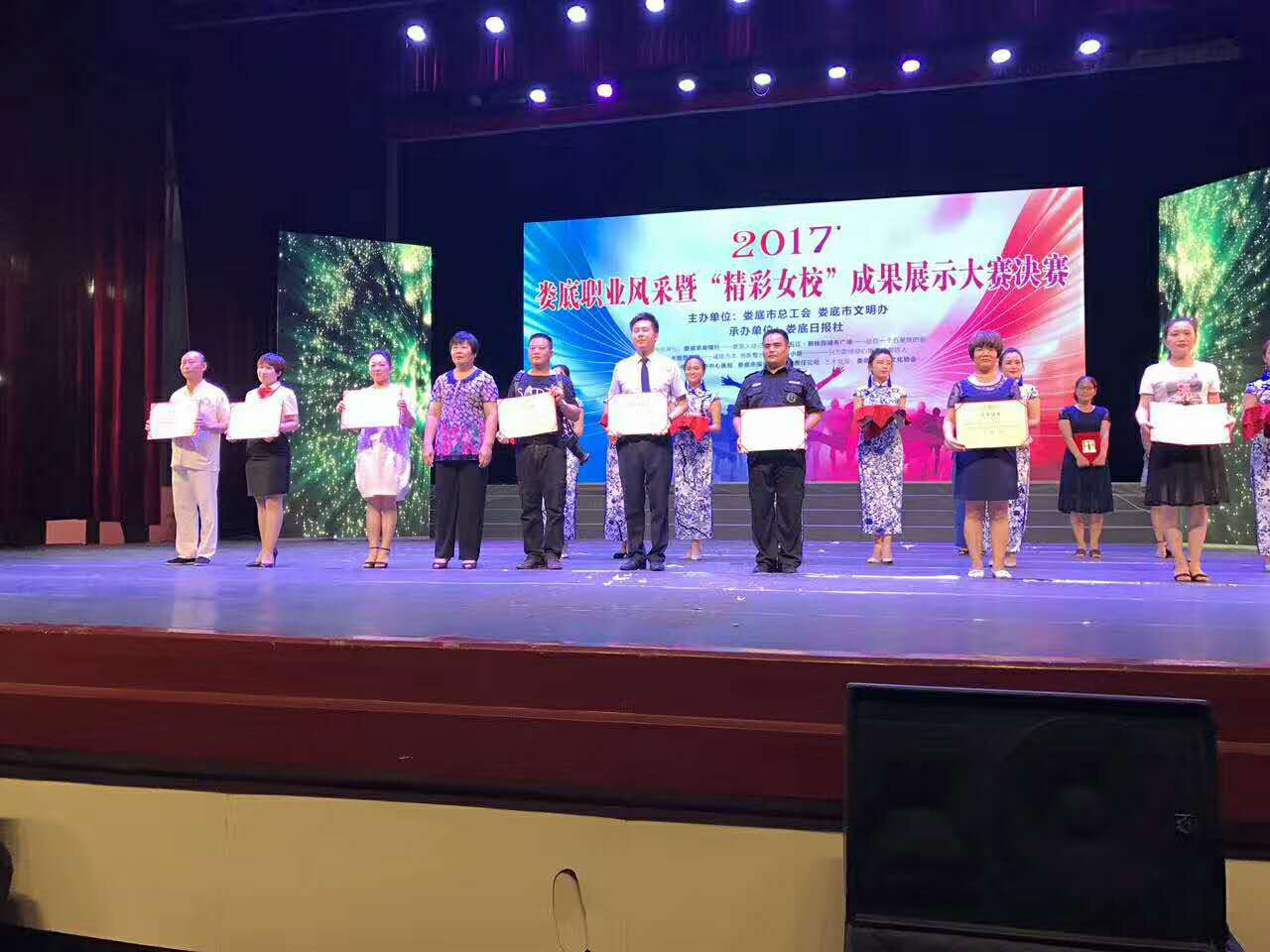 7月19日晚,由婁底市總工會(huì)、婁底市創(chuàng)管辦主辦的2017·婁底職業(yè)風(fēng)采暨“精彩女校”成果展示大賽決賽在婁底市星星影劇院隆重舉行,來自全市各行各業(yè)的16家參賽隊(duì)伍,近200多名演員同臺(tái)競(jìng)技。我司工會(huì)女職工培訓(xùn)學(xué)校選送的"精彩女校,點(diǎn)亮絢麗人生"在大賽中榮獲三等獎(jiǎng)。