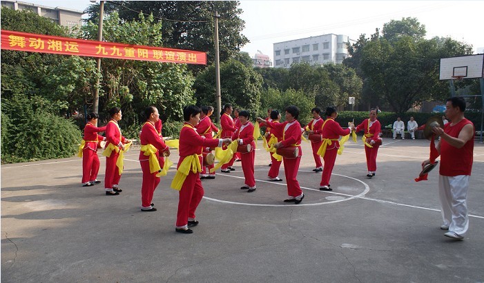 九時(shí)許,在歡快喜慶的腰鼓聲中 “天天太極 舞動(dòng)湘運(yùn) 九九重陽”聯(lián)誼演出拉開了序幕。