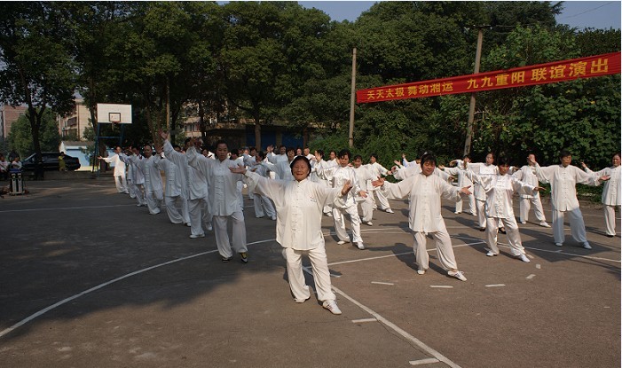 公司退休、內(nèi)退、協(xié)保人員自發(fā)組織了“天天太極 舞動(dòng)湘運(yùn) 九九重陽”聯(lián)誼演出來慶祝自己的節(jié)目。公司董事謝克明、監(jiān)事萬新業(yè)、總經(jīng)理助理陳夢麟、退管辦主任李莉及原公司領(lǐng)導(dǎo)湘運(yùn)太極站顧問吳子書,喻振璜、龍緒鵬等參加了今天的慶;顒(dòng)。市太極拳協(xié)會(huì)會(huì)長粟立平、副會(huì)長陳翠云、秘書長喻鳳葵、副秘書長曾細(xì)威、辦公室主任周德華也應(yīng)邀到會(huì)觀看指導(dǎo)。