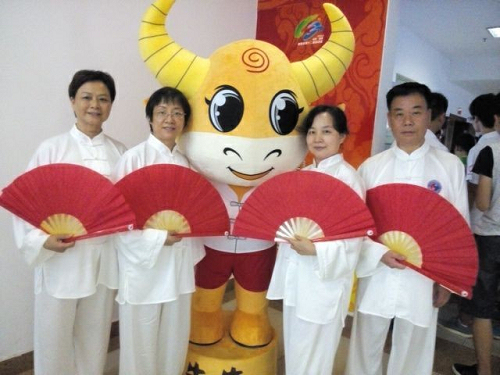 “白袍紅扇功夫令,削撩架推手法精,剛健優(yōu)美韻味純,自強(qiáng)不息太極人”,開幕式的第四個(gè)文藝表演節(jié)目,是充滿飄逸美感和武術(shù)剛陽之氣的太極功夫扇隊(duì)手持紅扇,伴隨著音樂表演,精彩的表現(xiàn)贏得了觀眾的陣陣掌聲,來自湘運(yùn)太極站的李定紅、彭玉梅、曾吉福、何文選四人的身影出現(xiàn)在了這支優(yōu)秀的表演隊(duì)伍中。這四人通過層層選拔脫穎而出,被選入開幕式太極功夫扇表演隊(duì)。為了備戰(zhàn)開幕式表演,在兩個(gè)多月排練中,他們克服天氣炎熱、訓(xùn)練強(qiáng)度大等困難,全身心投入到訓(xùn)練中,充分展示了婁底湘運(yùn)人團(tuán)結(jié)向上,勇于拼搏的精神。